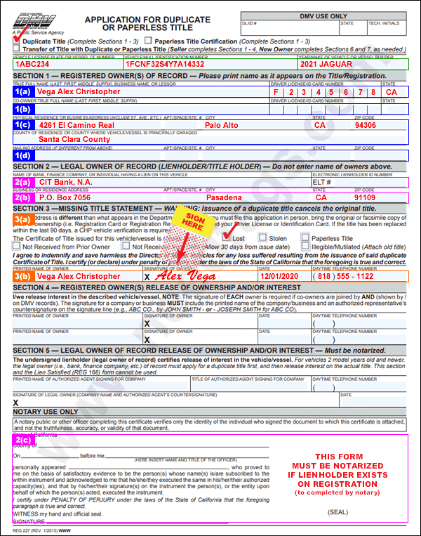 If your title is lost or damaged, you can use this transaction to order a replacement.