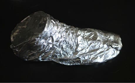 Cut two squares of aluminum foil, making one square twice the size of the other square.