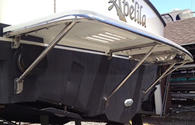 This video shows how to install an add on swim platform or dive platform on a boat or yacht transom from the brackets to the platform itself .