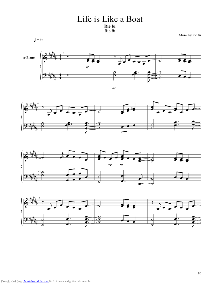 Download and print in pdf or midi free sheet music for life is like a boat by rie fu arranged by heiwa98 for piano (solo). Chordify is your #1 platform for chords. This is a 1 page sample along with sheet music player. Download and print in pdf or midi free sheet music for life is like a boat by rie fu arranged by heiwa98 for piano (solo) Use synthesia to play midi files. Bleach's life is like a boat midi, sheet music, mp3, karaoke tracks on hamienet.com open educational music library. Rie fu's songs are often . Chords notes tabs tutorial scores pdf solo cover version lyrics pieces . Life is like a boat, bleach anime ending 1 composed by rie fu i . In this piano tutorial you'll learn how to play life is like a. 這是rie fu 的作品life is like a boat 是動畫'死神/飄靈'的片尾曲1.