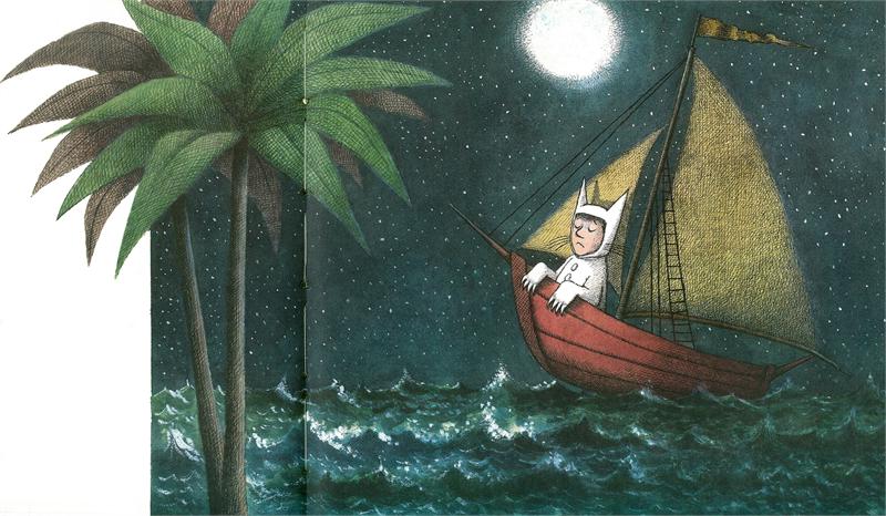 He sails to the land of the wild things, .