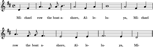 It is a simple repeat of michael row the boat ashore, hallelujah sung twice.