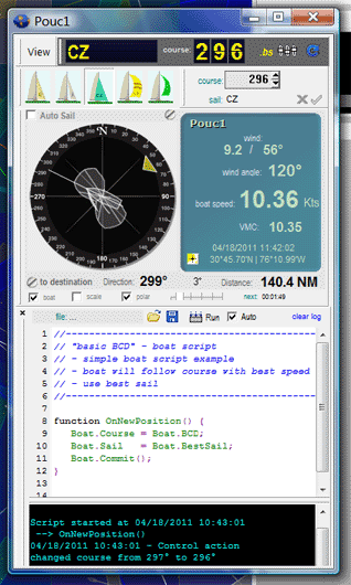 The boat's direction relative to the wind.