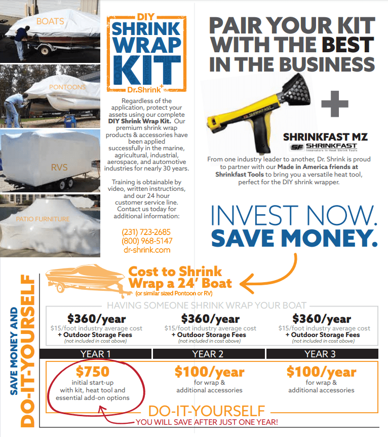 Professional boat shrink wrappers use the boat's size to determine the final . The phrase used to describe a type of purchase or license agreement associated with shipped goods, such as boxed versions of computer software purchased the phrase used to describe a type of purchase or license agreement associated with shi. (free storage when you come to us to winterize and shrink . On average, plan on spending around $8 to as much as $18 per foot to have your boat shrink wrapped. A quick search online of “boat weatherization near me” .